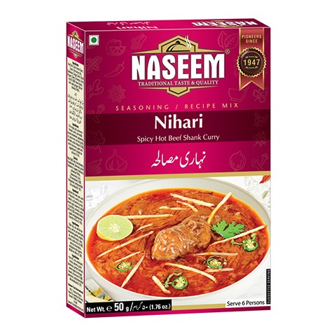 spicies Afin de faciliter vos achats veuillez télécharger la liste de tous nos produits avec leur référence. Merci. Cliquez ici Naseem Achaar Gosht 50gr Naseem Aloo Gosht 50gr Naseem Biryani Naseem Bombay Biryani 60g Naseem Chaat Masala 50gr Naseem Chicken Masala 50gr Naseem Kachri Qeema 50gr Naseem Karahi-Fry Gosht 50gr Naseem Meat Tenderizer 50gr Naseem Nihari 50gr Naseem Paya 50gr Naseem Chai Punjabi Yakhni Pilau 50gr Naseem Qorma 50gr Naseem Sindhi Biryani 60gr Distribution ..... Distribution ..... 18